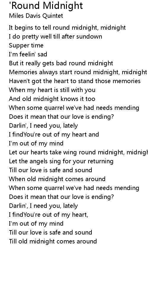 It begins to tell round midnight, midnight |