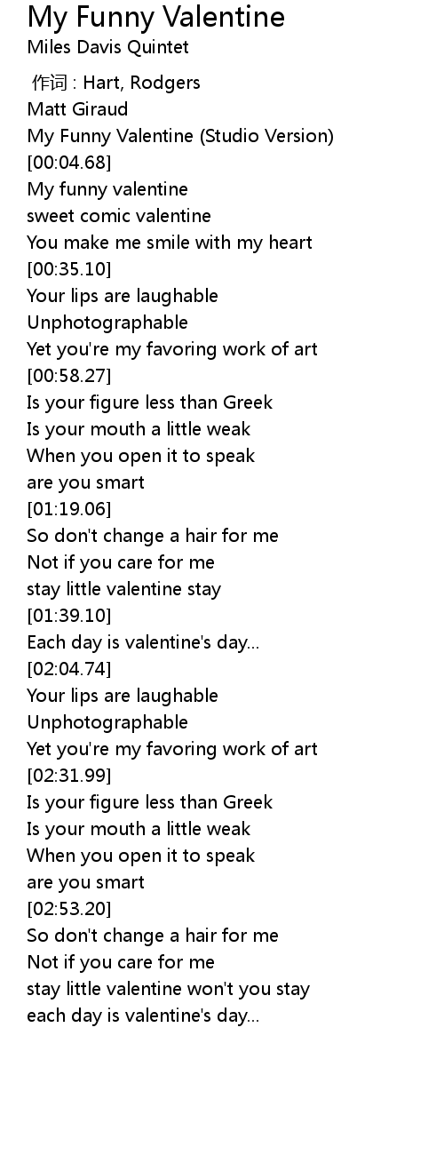 | [00:13.29] | My funny valentine |