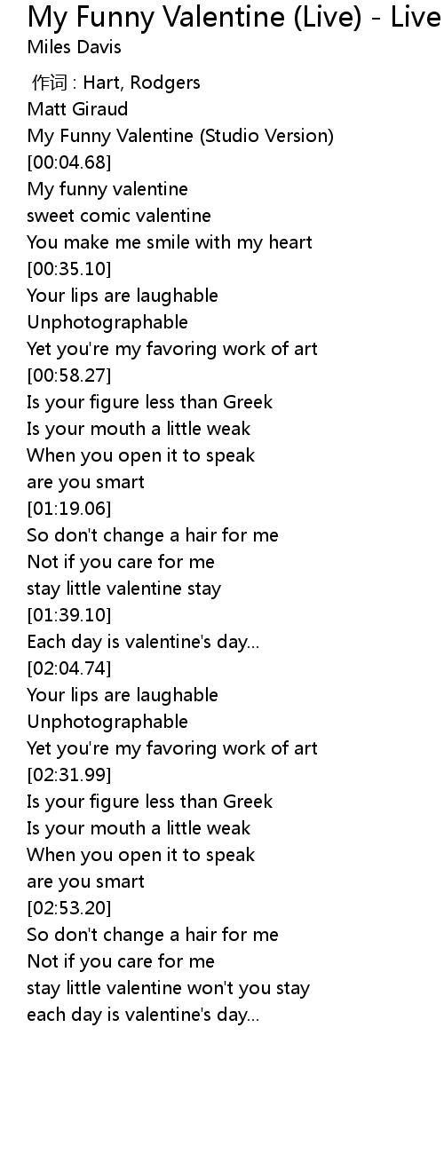 | [00:03.15] | My Funny Valentine (Studio Version) |