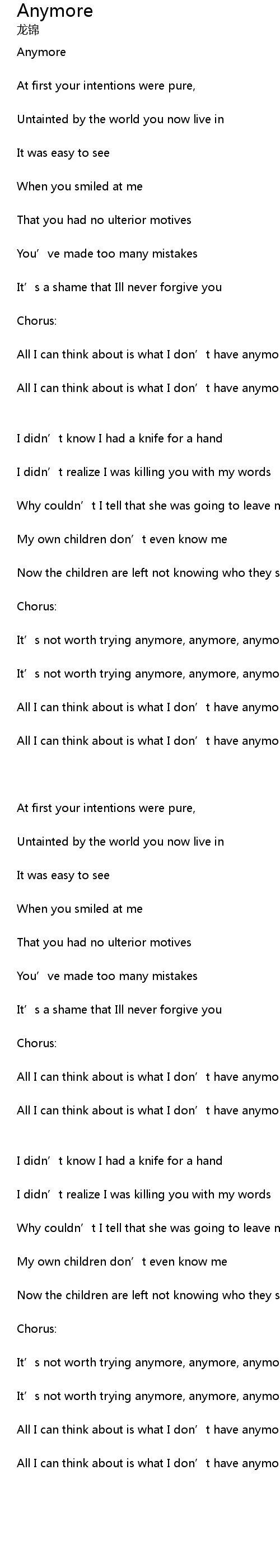 | All I can think about is what I don' t have anymore, anymore, anymore | |