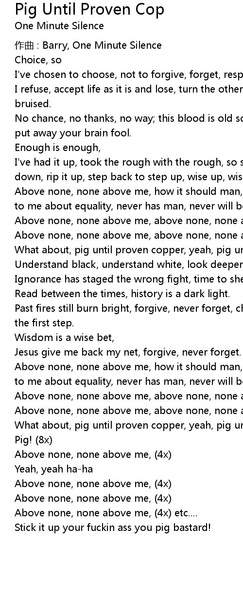 | What about, pig until proven copper, yeah, pig until proven cop, (4x) | |