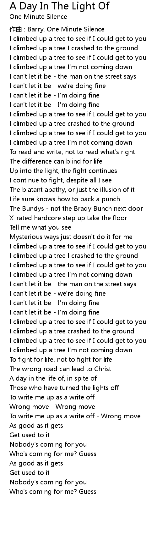 | Song | A Day In The Light Of |