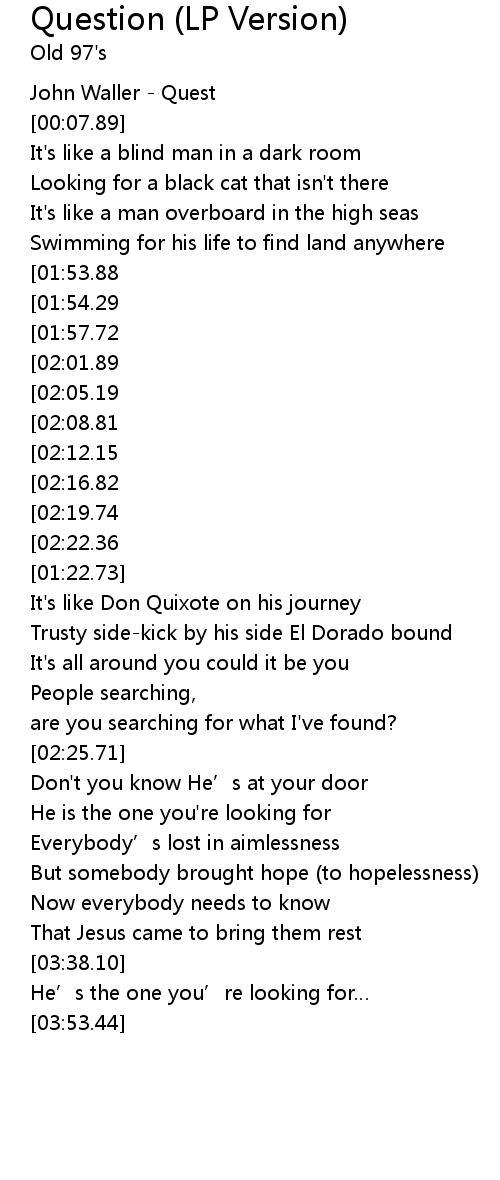 | [00:01.12] | John Waller Quest |