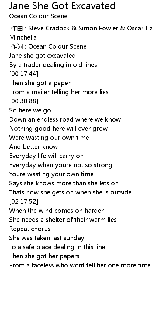| [00:04.29] | Jane she got excavated |