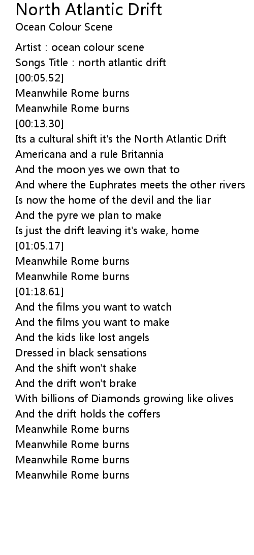 | [00:17.36] | Its a cultural shift it' s the North Atlantic Drift |