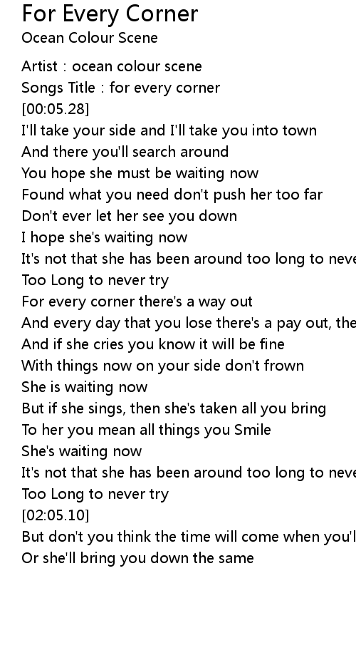 | [00:01.78] | Artist:ocean colour scene |