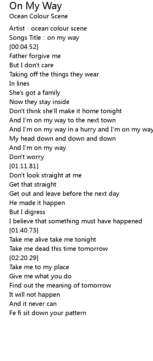| [01:02.21] | And I' m on my way |