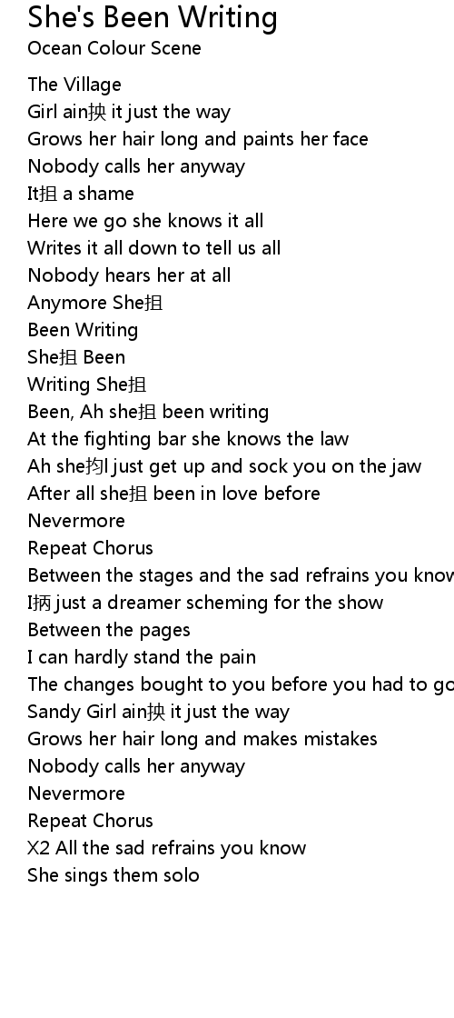 | Been, Ah she抯 been writing | |