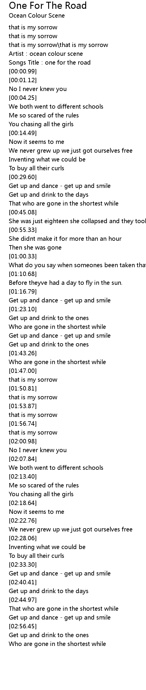 | [00:48.16] | She was just eighteen she collapsed and they took her away |
