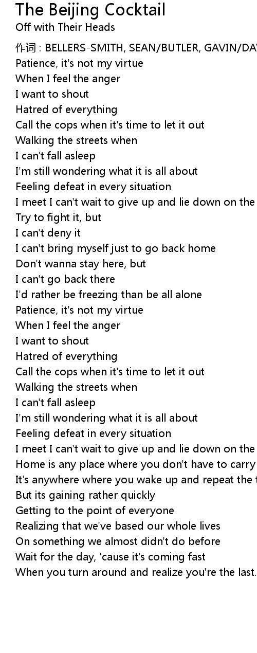 | Song | The Beijing Cocktail |