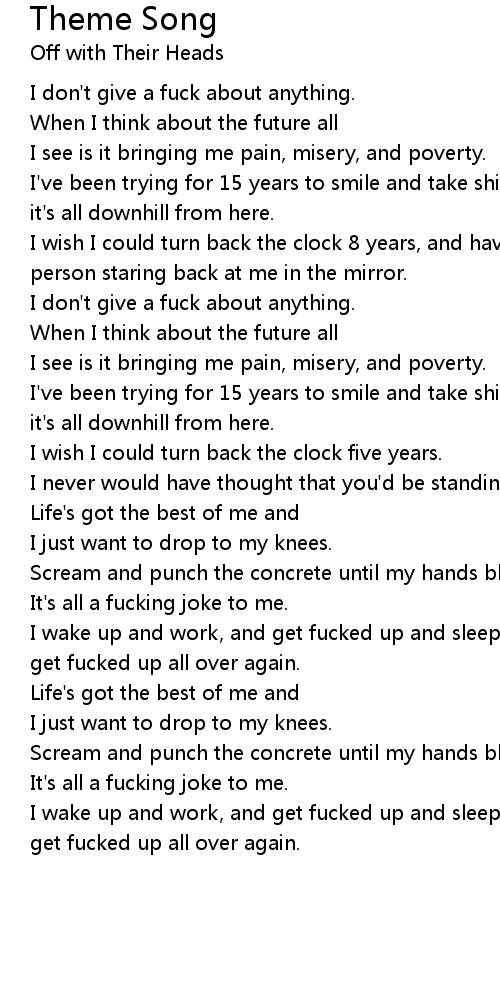 I wake up and work, and get fucked up and sleep, and then wake up and work, and get fucked up all over again. |