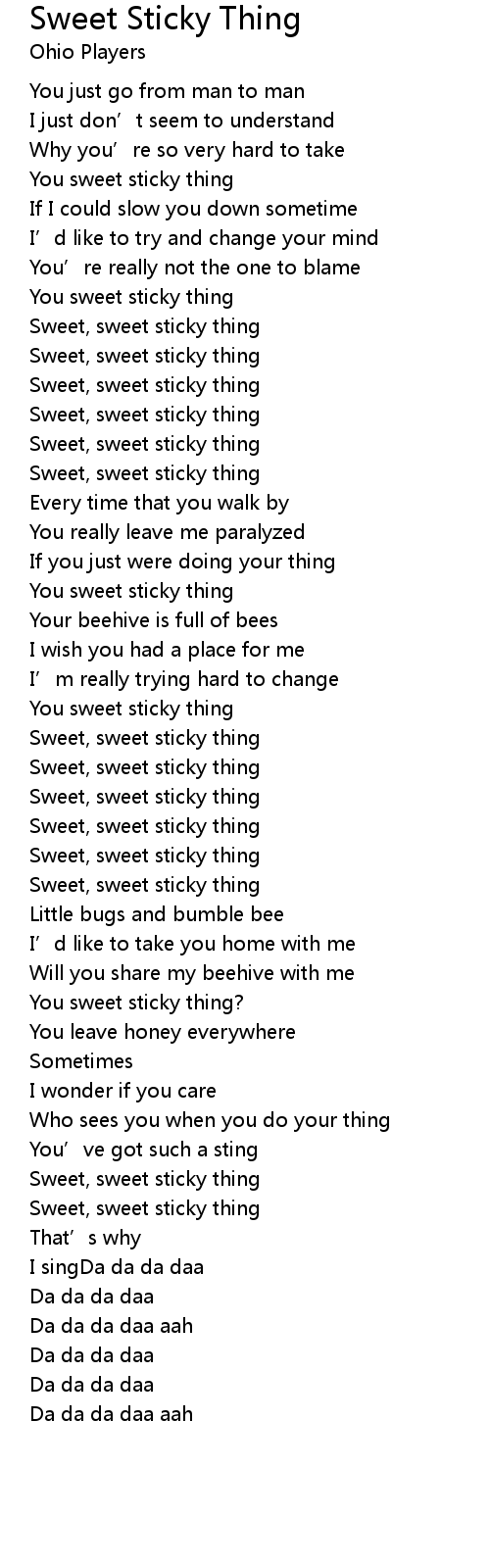 | You sweet sticky thing? | |