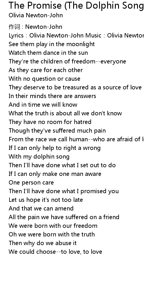 | Song | The Promise (The Dolphin Song) |