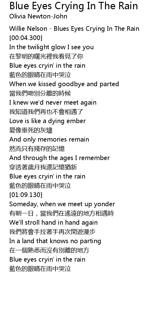 | [00:00.000] | Willie Nelson Blues Eyes Crying In The Rain |