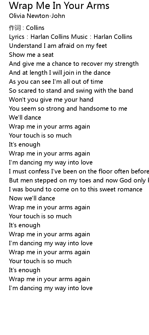 | Song | Wrap Me In Your Arms |