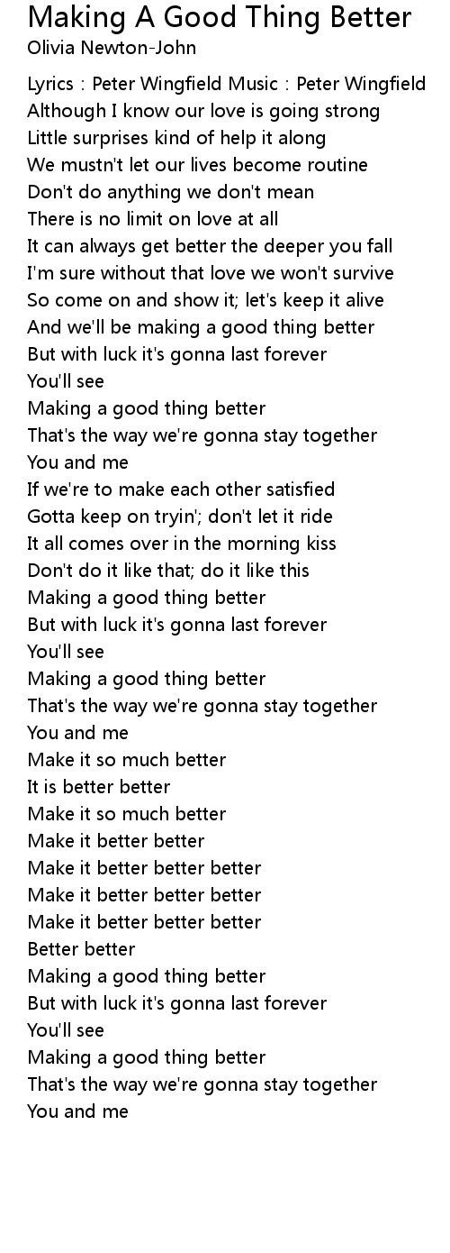| Song | Making A Good Thing Better |