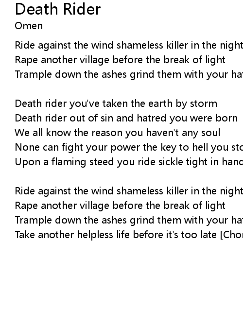 Death rider out of sin and hatred you were born |