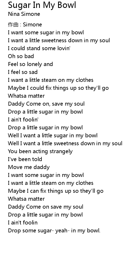 | Well I want a little sugar in my bowl | |