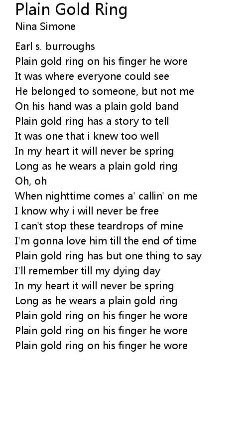 Long as he wears a plain gold ring |