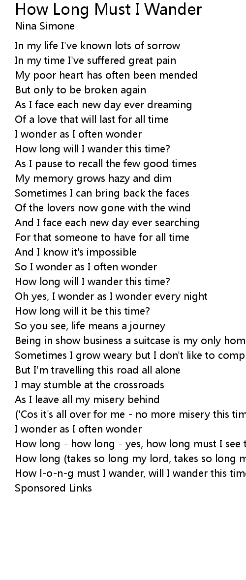 How l-o-n-g must I wander, will I wander this time? |
