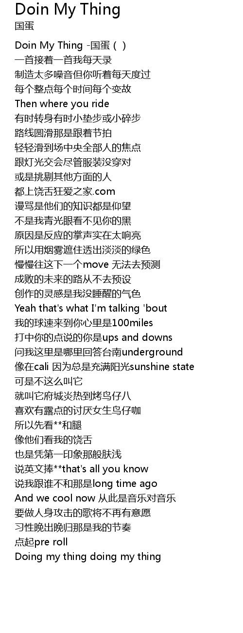 | [00:00.00] | Doin My Thing -国蛋() |