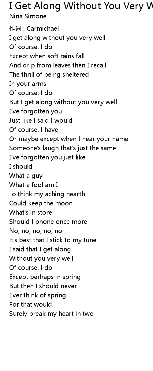 | But I get along without you very well | |
