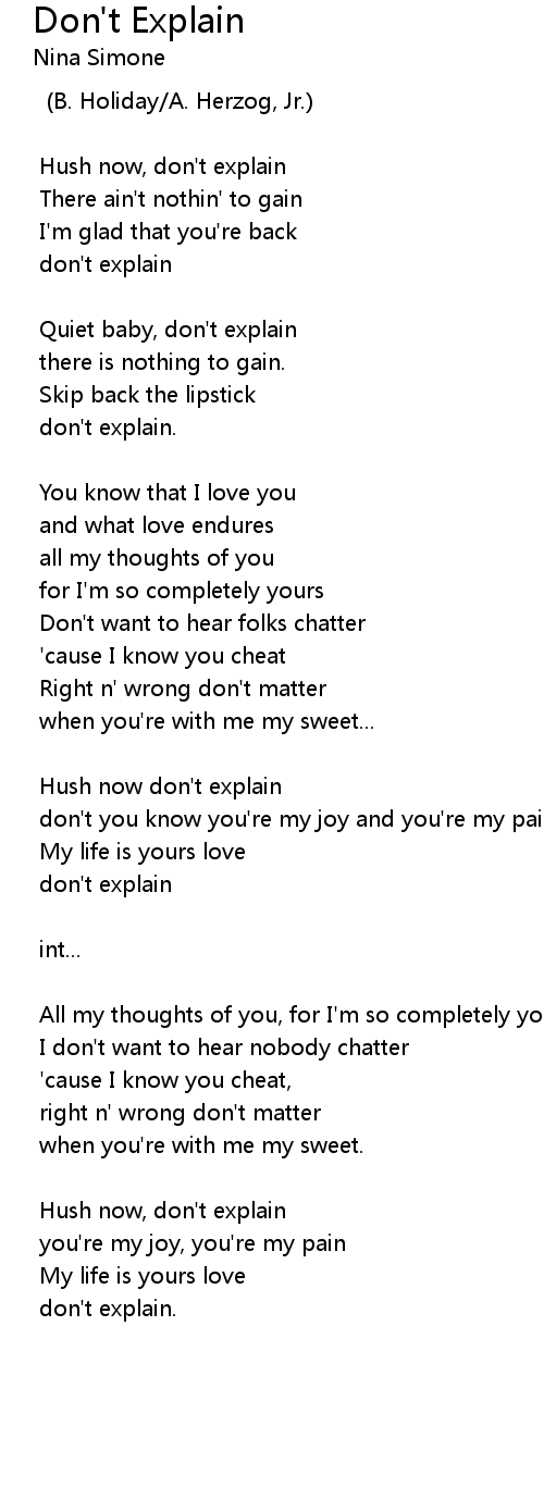 Hush now don't explain |