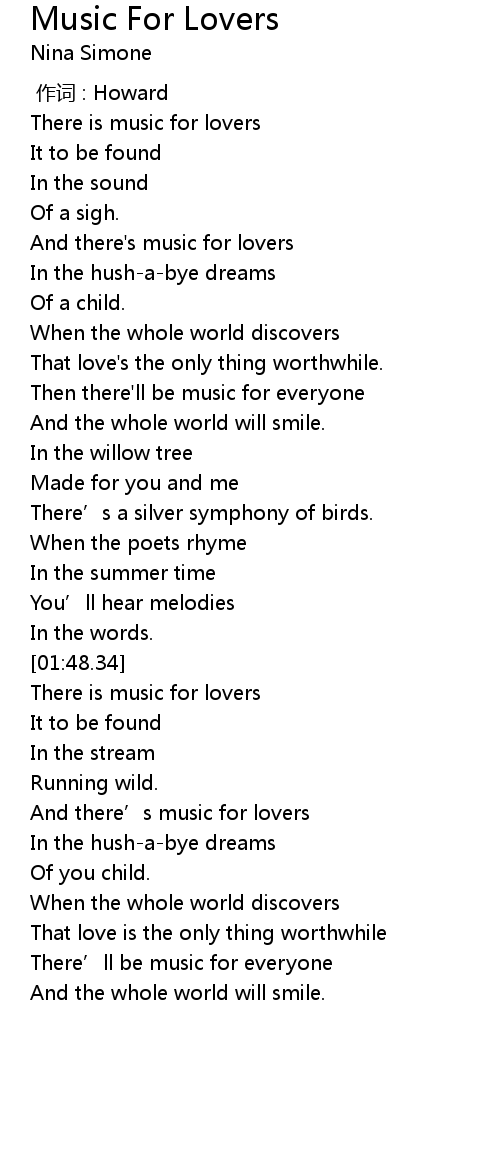 | [01:53.85] | There is music for lovers |