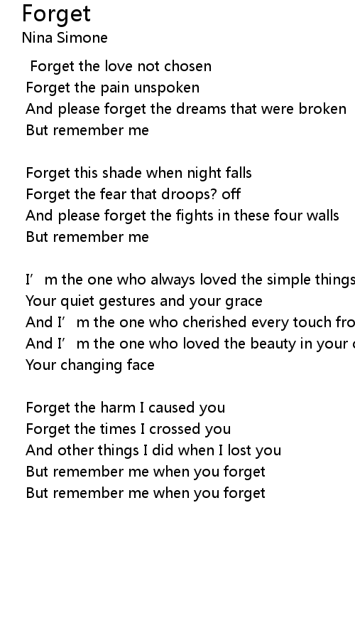 | But remember me when you forget |