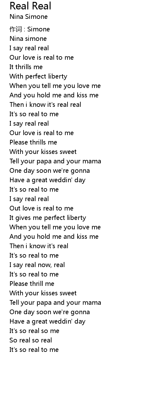| Then i know it' s real real | |