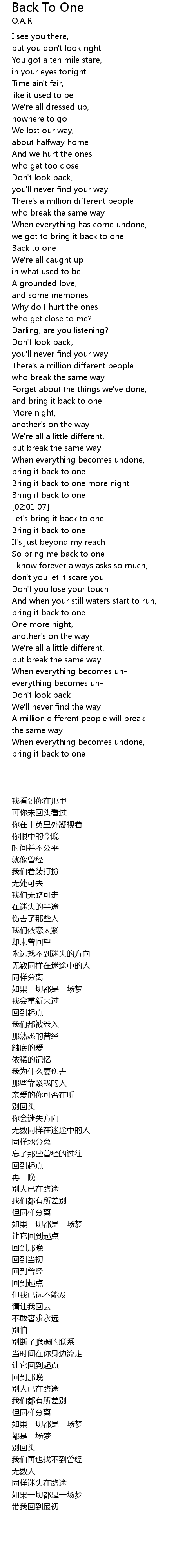 So bring me back to one |