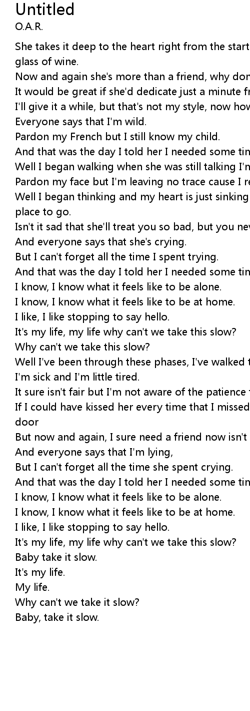 It's my life, my life why can't we take this slow? |