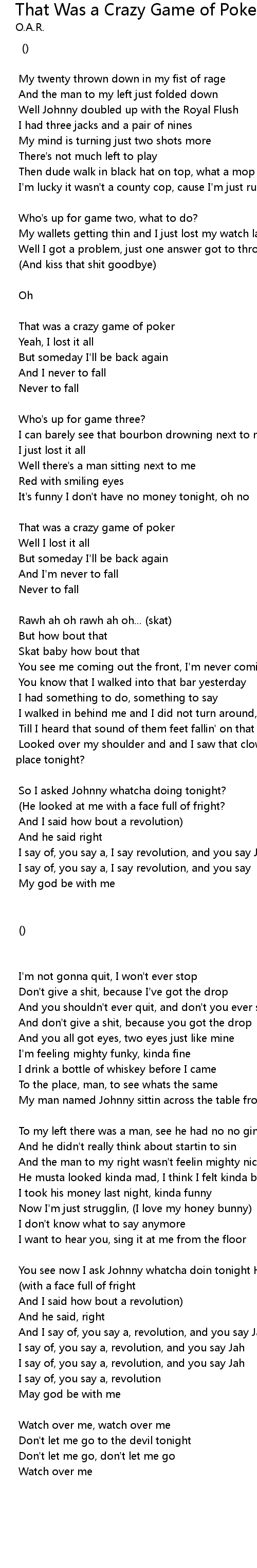 Song That Was a Crazy Game of Poker