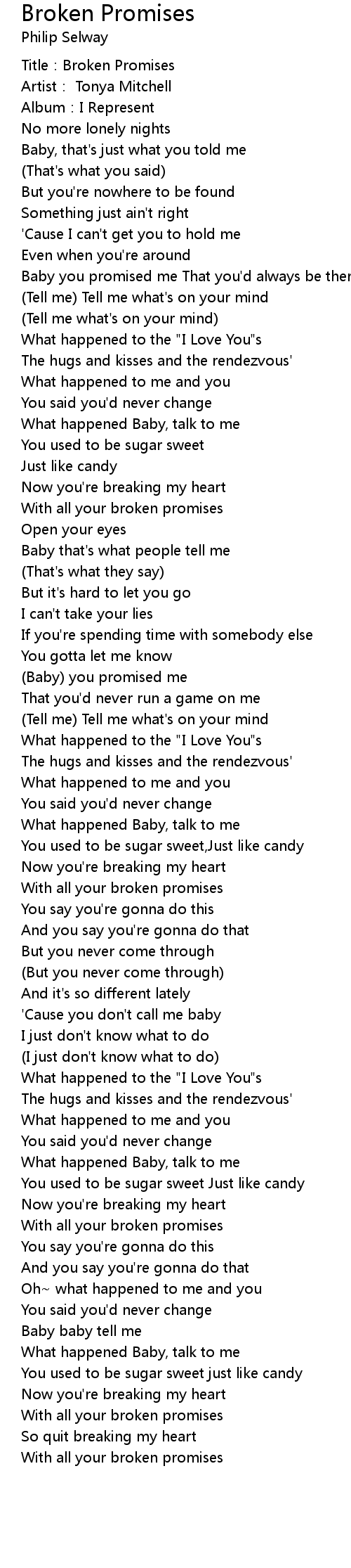 | [00:00.00] | Title: Broken Promises |