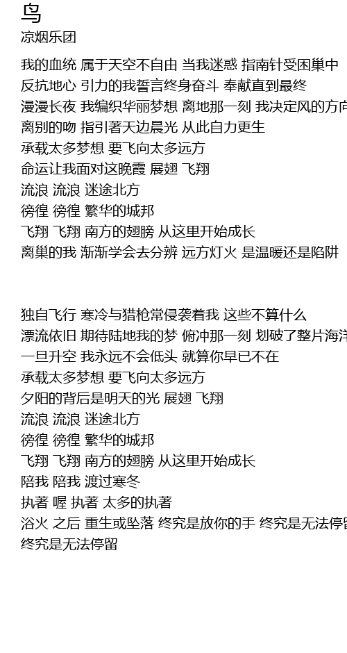 | 漂流依旧 期待陆地我的梦 俯冲那一刻 划破了整片海洋 | |