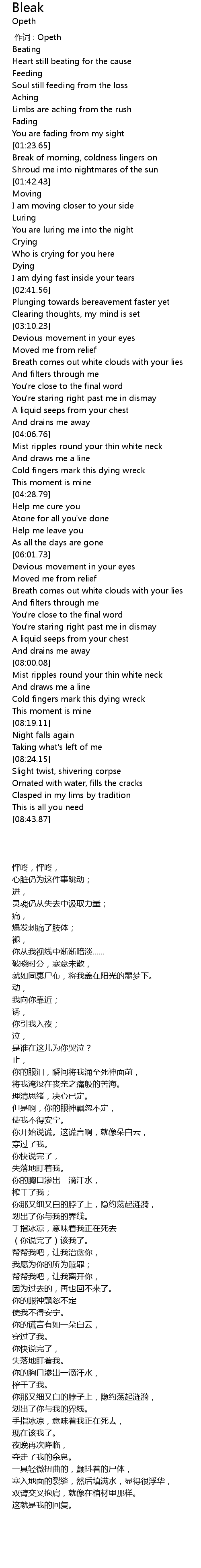 | [00:00.00] | zuò cí : Opeth |