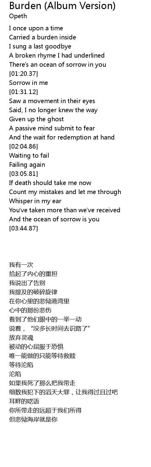 | [00:55.34] | Carried a burden inside |