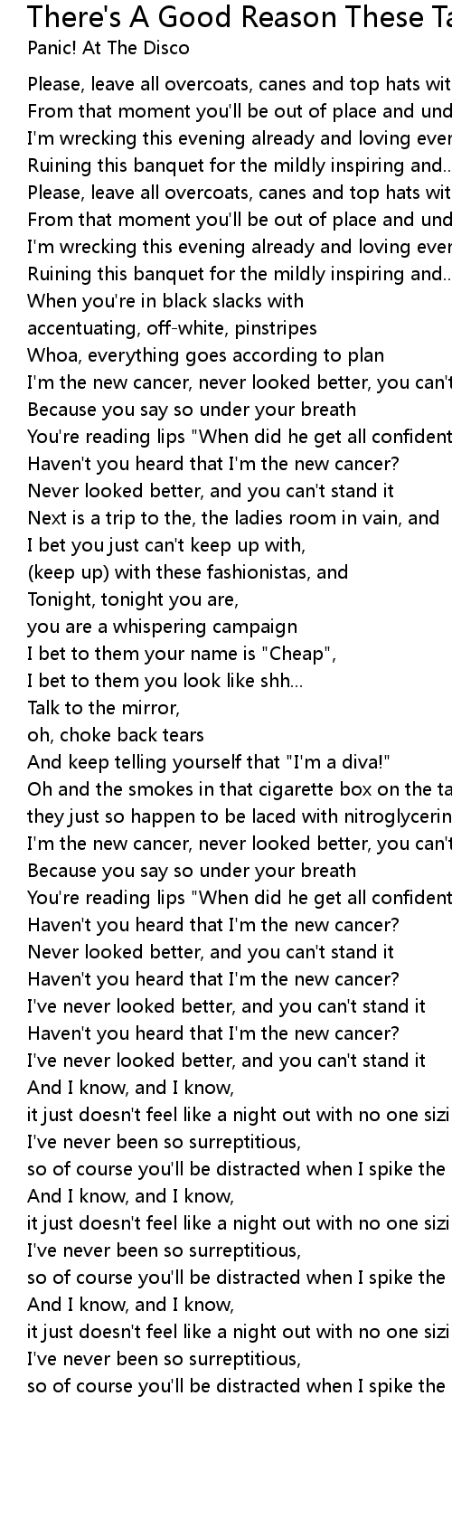 There's A Good Reason These Tables Are Numbered Honey, You Just Haven't Thought Of It Yet (Album Version) Lyrics