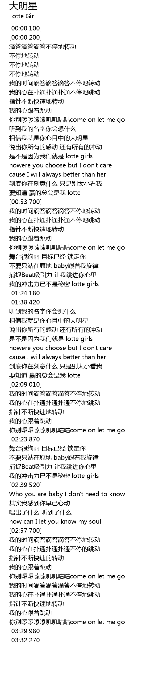 | [03:26.320] | ni bie luo luo suo suo ji ji gu gu come on let me go |