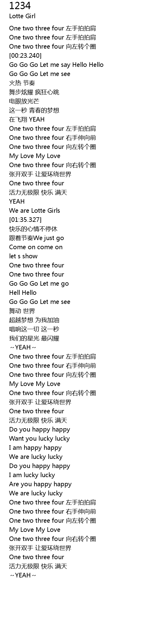 | [00:01.140] | One two three four zuǒ shǒu pāi pāi jiān |