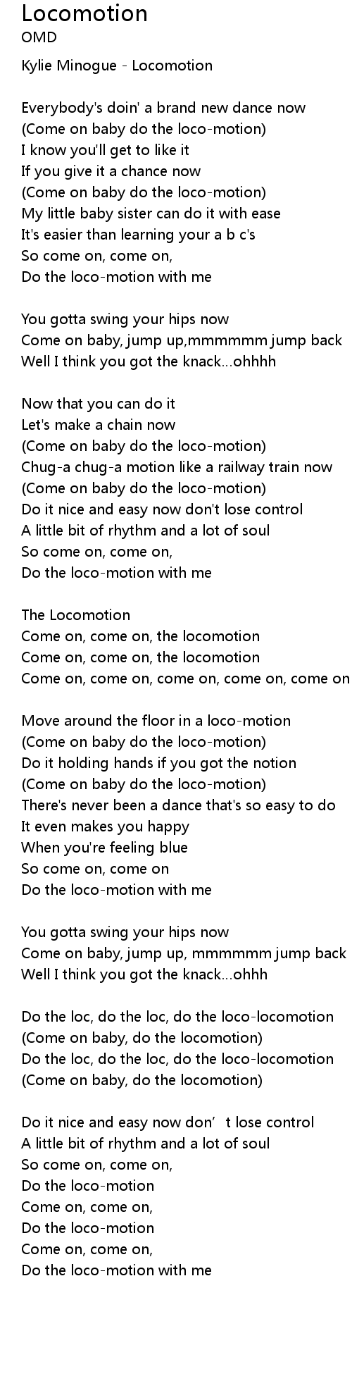 | (Come on baby do the loco-motion) | |