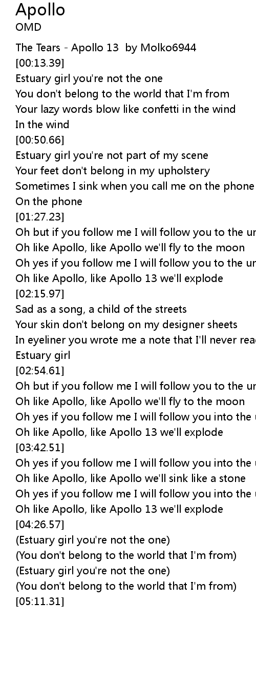 Oh like Apollo, like Apollo we'll fly to the moon |