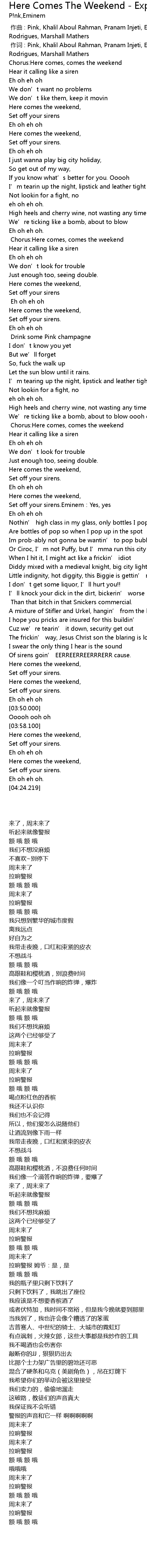 | [02:22.539] | Chorus: Here comes, comes the weekend |