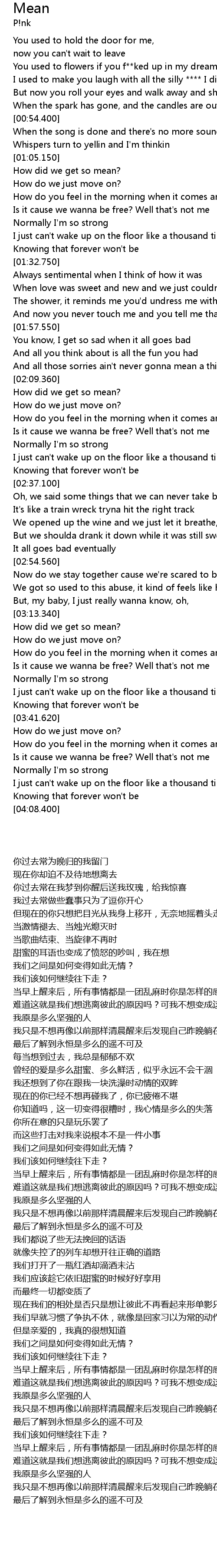 | [00:34.960] | You used to flowers if you f**ked up in my dreams |