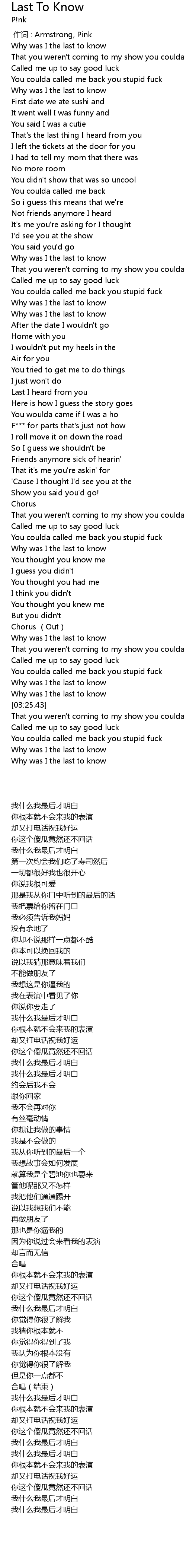 | [00:00.00] | 作词 : Armstrong, Pink |