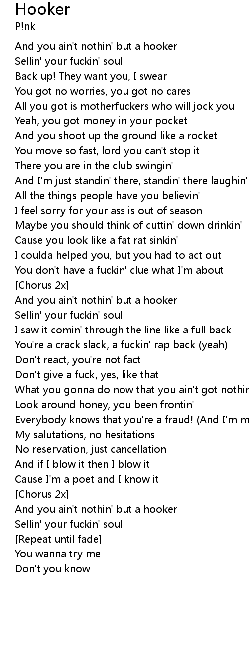 | And you ain't nothin' but a hooker | |