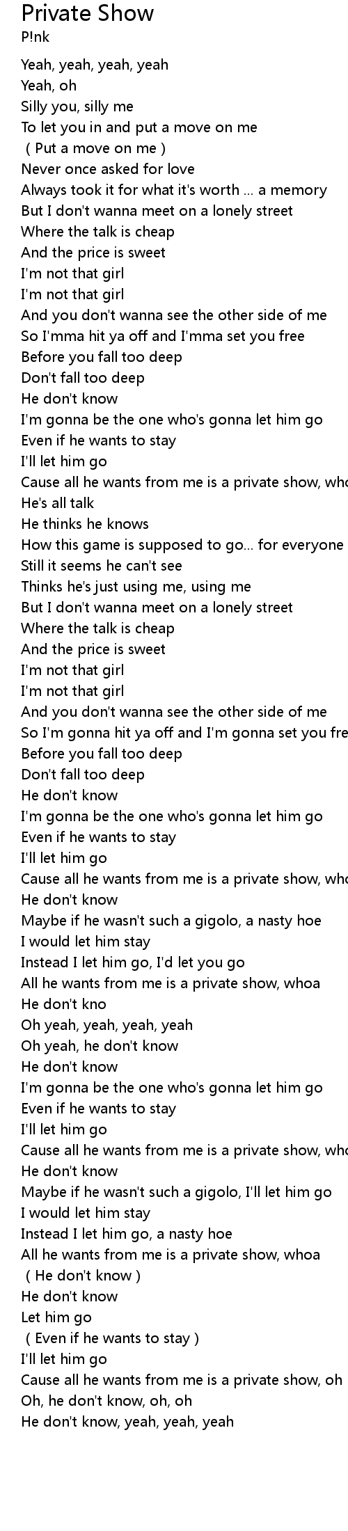 | [02:34.61] | All he wants from me is a private show, whoa |