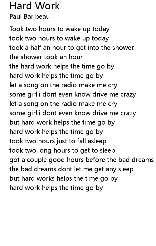 hard work helps the time go by |