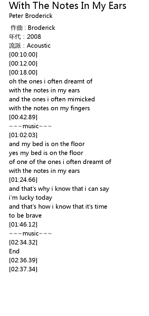 | [01:19.65] | with the notes in my ears |