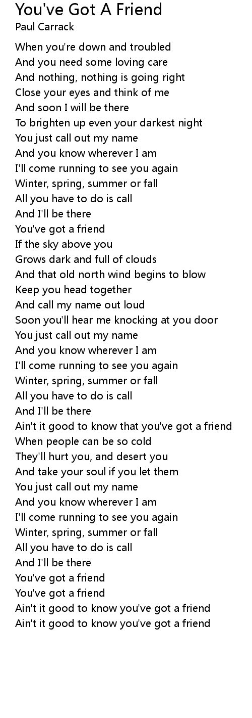 Ain't it good to know you've got a friend |